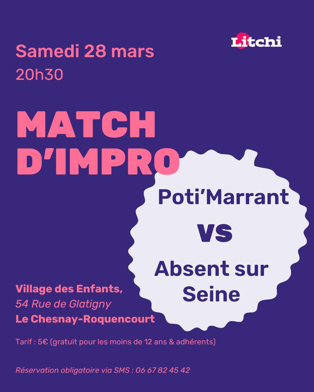Samedi 28 mars, les Poti’Marrant de la Litchi affronte les Absent sur Seine de Rueil-Malmaison au Village des Enfants à 20h30.
