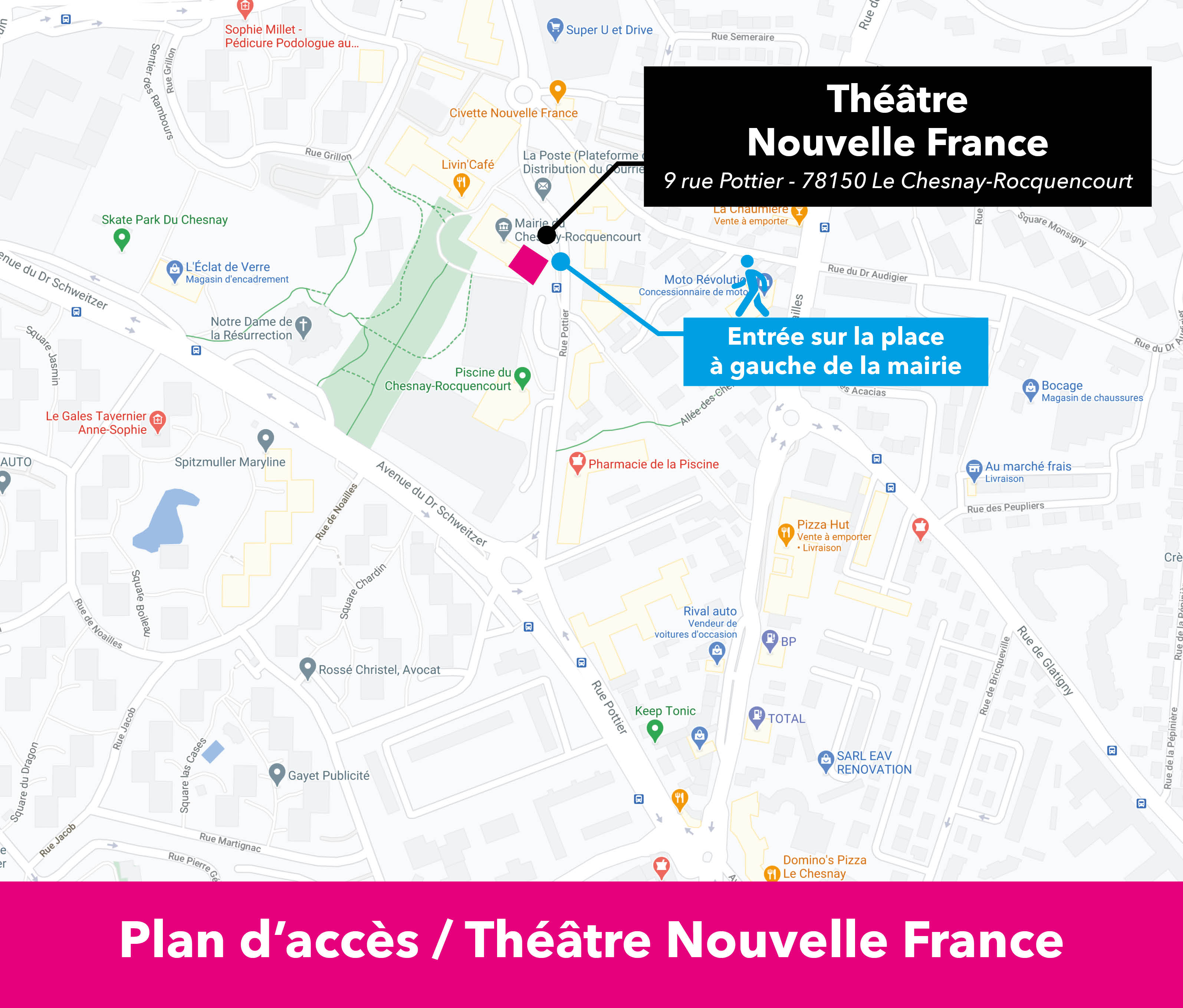 le 54 rue de Glatigny ou le 39 rue Corneille - Accès voiture : 54 rue de Glatigny