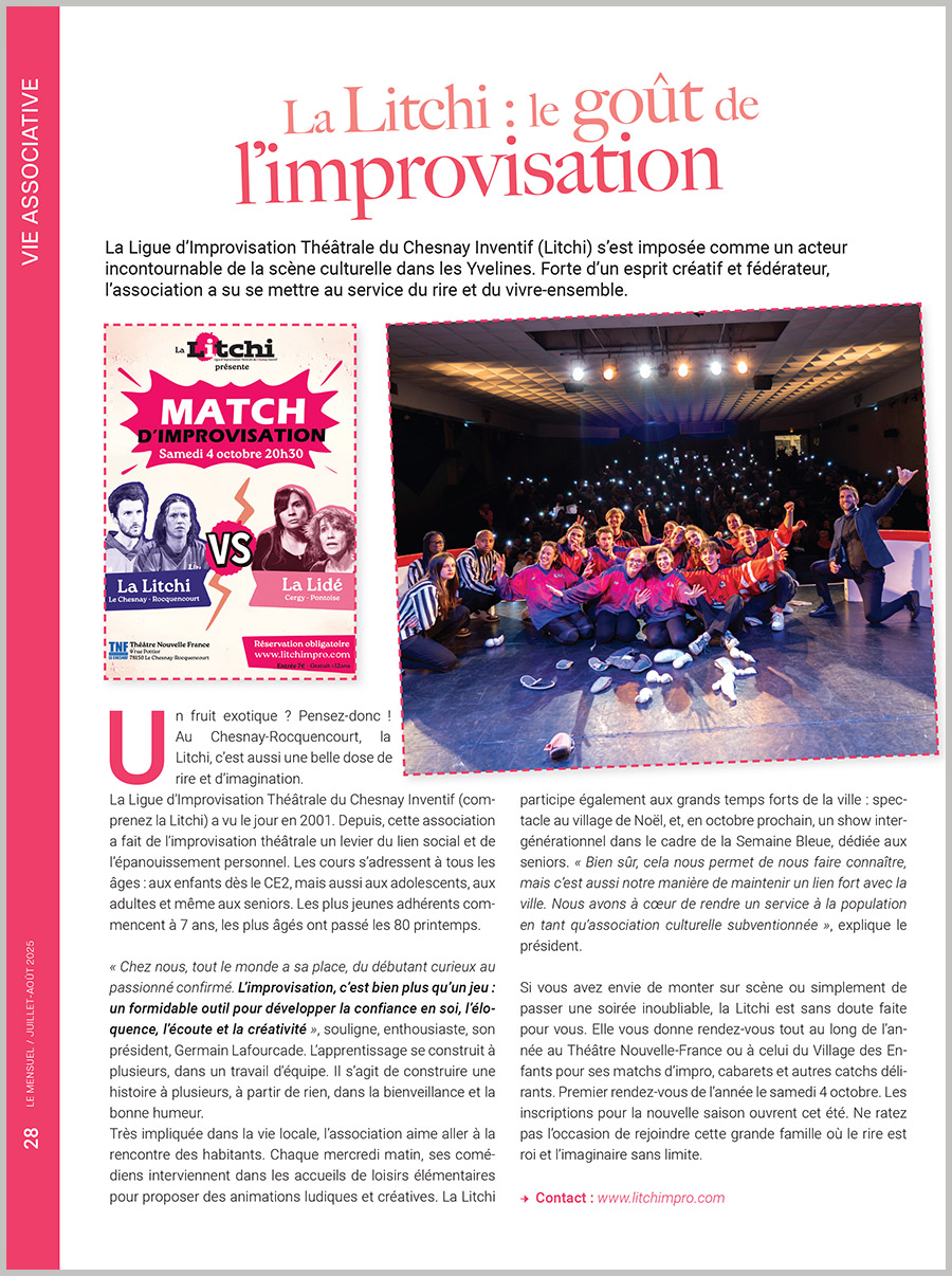 Le mensuel officiel de la mairie du Chesnay-Rocquencourt a mis en avant la Litchi pendant l’été 2025 :